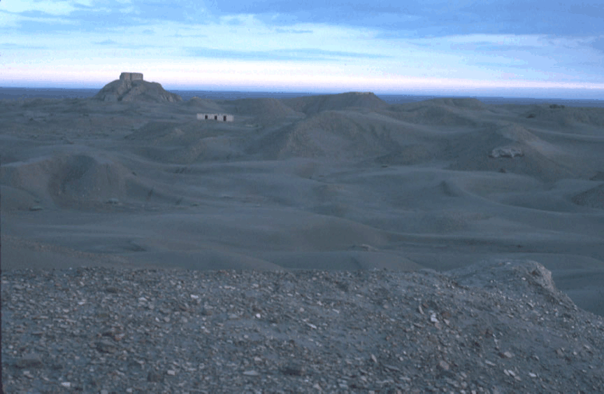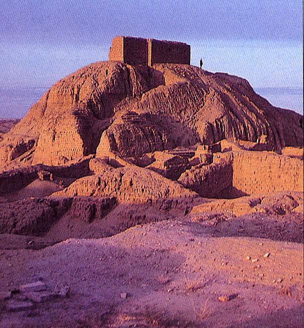 Originally a village of reed huts in the marshes, Nippur was especially prone to devastation by flooding or fire. For some reason, settlement persisted at the same spot, and gradually the site rose above the marshes - partly from the accumulation of debris, and partly through the efforts of the inhabitants. As the inhabitants began to develop in civilization, they substituted, at least in the case of their shrine, mud-brick buildings instead of reed huts. The earliest age of civilization, the "clay age", is marked by crude, hand-made pottery and thumb-marked bricks - flat on one side, concave on the other, gradually developing through several fairly marked stages. The exact form of the sanctuary at that period cannot be determined, but it seems to have been connected with the burning of the dead, and extensive remains of such cremation are found in all the earlier, pre-Sargonic strata. There is evidence of the succession on the site of different peoples, varying somewhat in their degrees of civilization. One stratum is marked by painted pottery of good make, similar to that found in a corresponding stratum in Susa, and resembling early Aegean pottery more closely than any later pottery found in Mesopotamia.