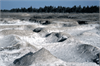 Nippur was situated on both sides of the Shatt-en-Nil canal, one of the earliest courses of the Euphrates, between the present bed of that river and the Tigris, almost 160 km southeast of Baghdad. It is represented by the great complex of ruin mounds known to the Arabs as Nuffar, written by the earlier explorers Niffer, divided into two main parts by the dry bed of the old Shatt-en-Nil (Arakhat). The highest point of these ruins, a conical hill rising about 30 m above the level of the surrounding plain, northeast of the canal bed, is called by the Arabs Bint el-Amiror "prince's daughter."